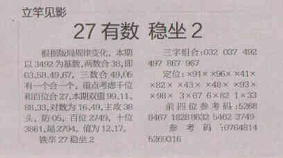 【立竿见影】第1567期预测信息<特区报>