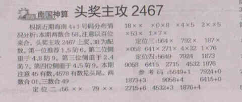 【南国神算】第1568期预测信息<特区报>