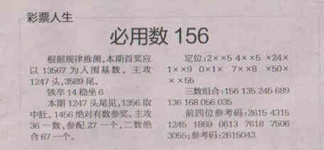 【彩票人生】第1569期预测信息<特区报>