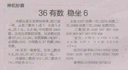【神机妙算】第1569期预测信息<特区报>