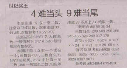 【世纪奖王】第1569期预测信息<特区报>