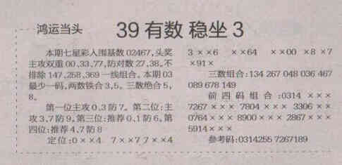 【鸿运当头】第1570期预测信息<特区报>