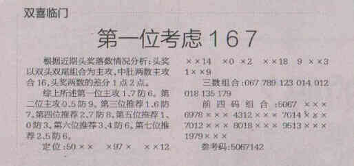 【双喜临门】第1572期预测信息<特区报>