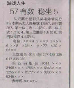 【游戏人生】第1572期预测信息<特区报>