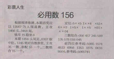 【彩票人生】第1572期预测信息<特区报>
