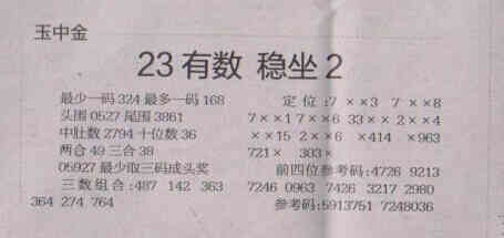 【玉中金】第1572期预测信息<特区报>