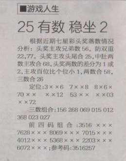 【游戏人生】第1573期预测信息<特区报>
