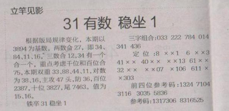 【立竿见影】第1576期预测信息<特区报>