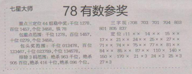 【七星大师】第1576期预测信息<特区报>
