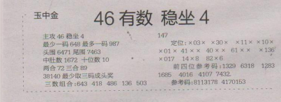 【玉中金】第1576期预测信息<特区报>