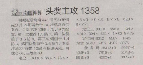 【南国神算】第1577期预测信息<特区报>