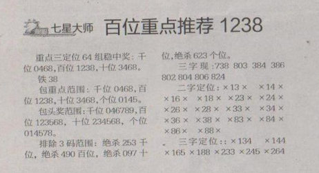 【七星大师】第1577期预测信息<特区报>