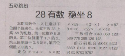 【五彩缤纷】第1578期预测信息<特区报>