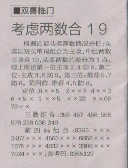 【双喜临门】第1579期预测信息<特区报>