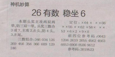 【神机妙算】第1579期预测信息<特区报>