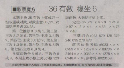 【彩票魔方】第1580期预测信息<特区报>