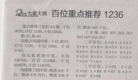 【七星大师】第1580期预测信息<特区报>