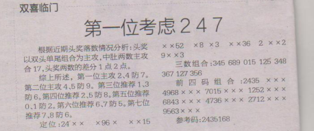 【双喜临门】第1581期预测信息<特区报>