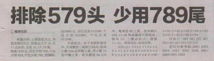 【概率玩彩】第1581期预测信息<特区报>