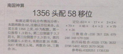 【南国神算】第1581期预测信息<特区报>