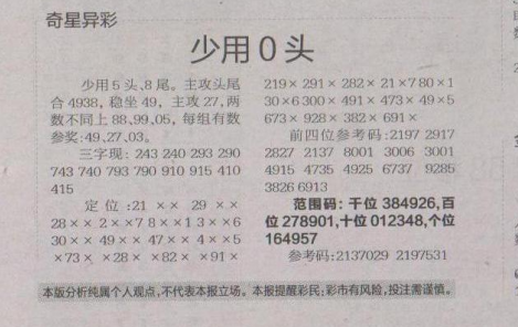 【奇星异彩】第1581期预测信息<特区报>