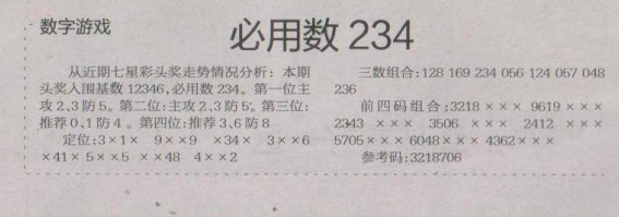 【数字游戏】第1582期预测信息<特区报>