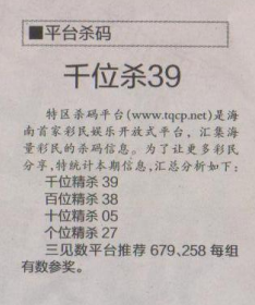 【平台杀码】第1583期预测信息<特区报>
