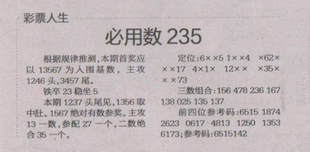 【彩票人生】第1584期预测信息<特区报>