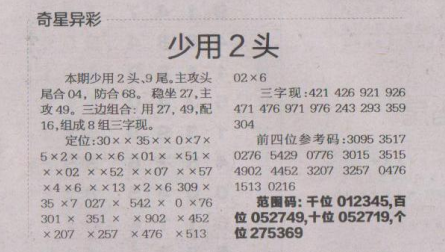 【奇星异彩】第1584期预测信息<特区报>