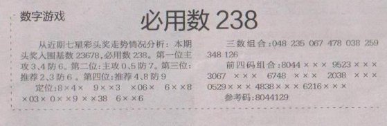 【数字游戏】第1585期预测信息<特区报>