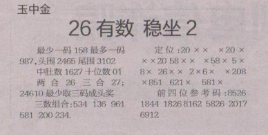【玉中金】第1585期预测信息<特区报>