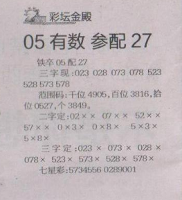 【彩坛金殿】第1586期预测信息<特区报>