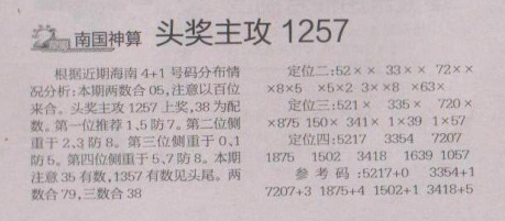 【南国神算】第1586期预测信息<特区报>