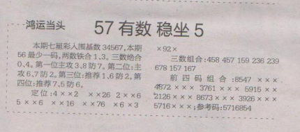 【鸿运当头】第1588期预测信息<特区报>