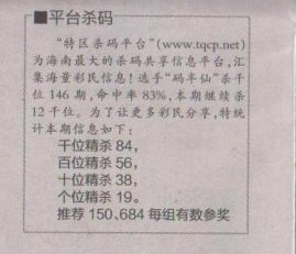 【平台杀码】第1588期预测信息<特区报>