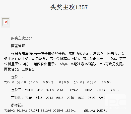 【南国神算】第1589期预测信息<特区报>