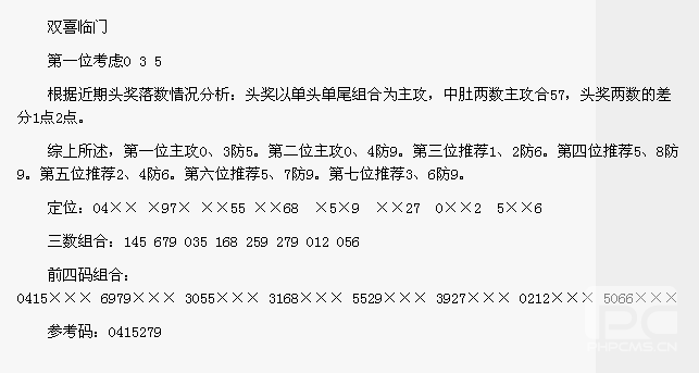 【双喜临门】第1590期预测信息<特区报>