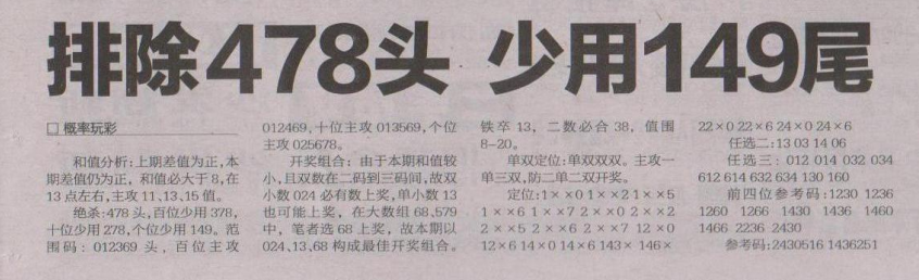 【概率玩彩】第1602期预测信息<特区报>