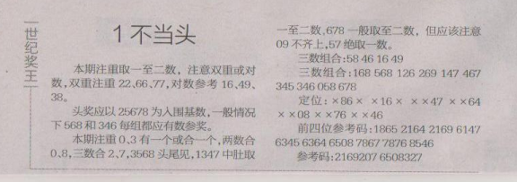 【世纪奖王】第1603期预测信息<特区报>