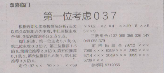 【双喜临门】第1605期预测信息<特区报>