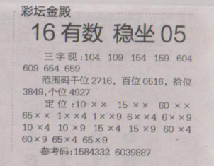 【彩坛金殿】第1605期预测信息<特区报>