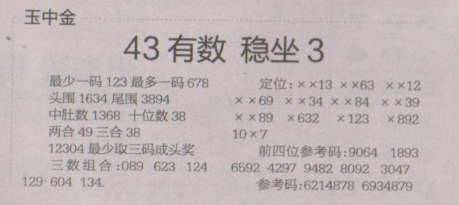 【玉中金】第1605期预测信息<特区报>