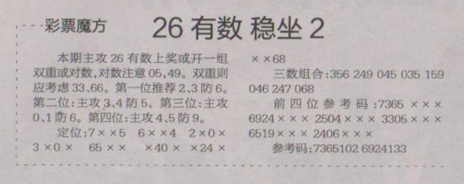 【彩票魔方】第1606期预测信息<特区报>