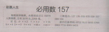 【彩票人生】第1606期预测信息<特区报>