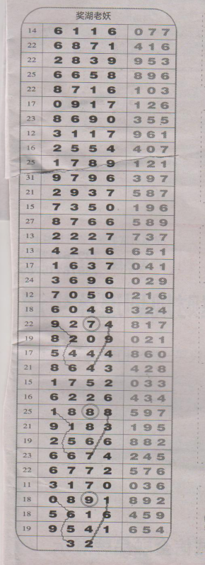 【奖湖老妖】第1606期预测信息<特区报>