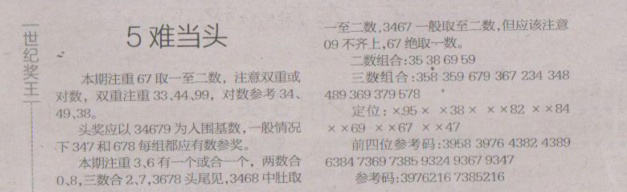 【世纪奖王】第1606期预测信息<特区报>