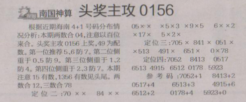 【南国神算】第1607期预测信息<特区报>