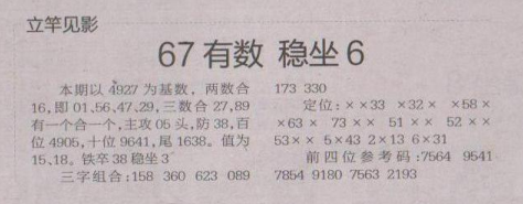 【立竿见影】第1608期预测信息<特区报>