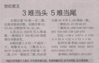 【世纪奖王】第1608期预测信息<特区报>