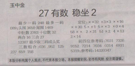 【玉中金】第1608期预测信息<特区报>